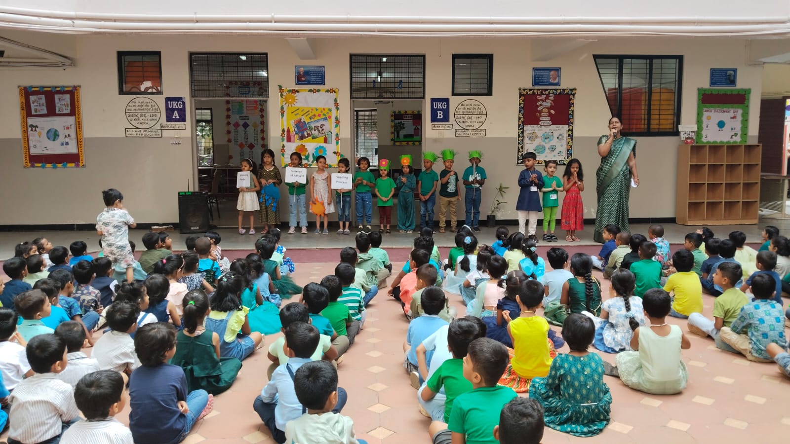 Assembly activities bring all the children together in one place, fostering a sense of belonging and community within the school. We host a variety of activities each day in assembly which includes School Prayer, students presenting thought for the day, talent show, physical exercise etc.,