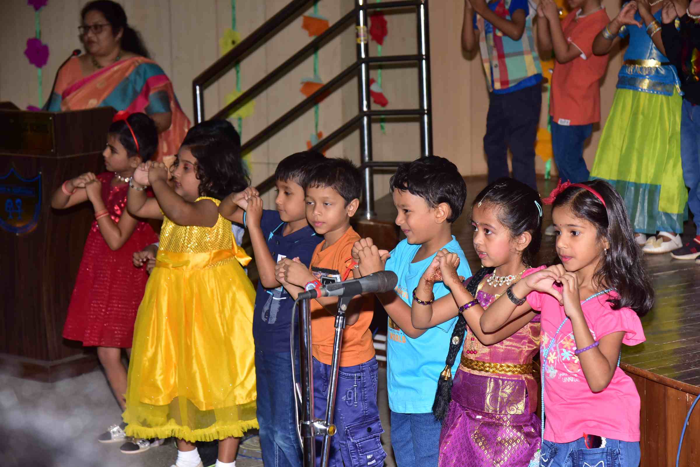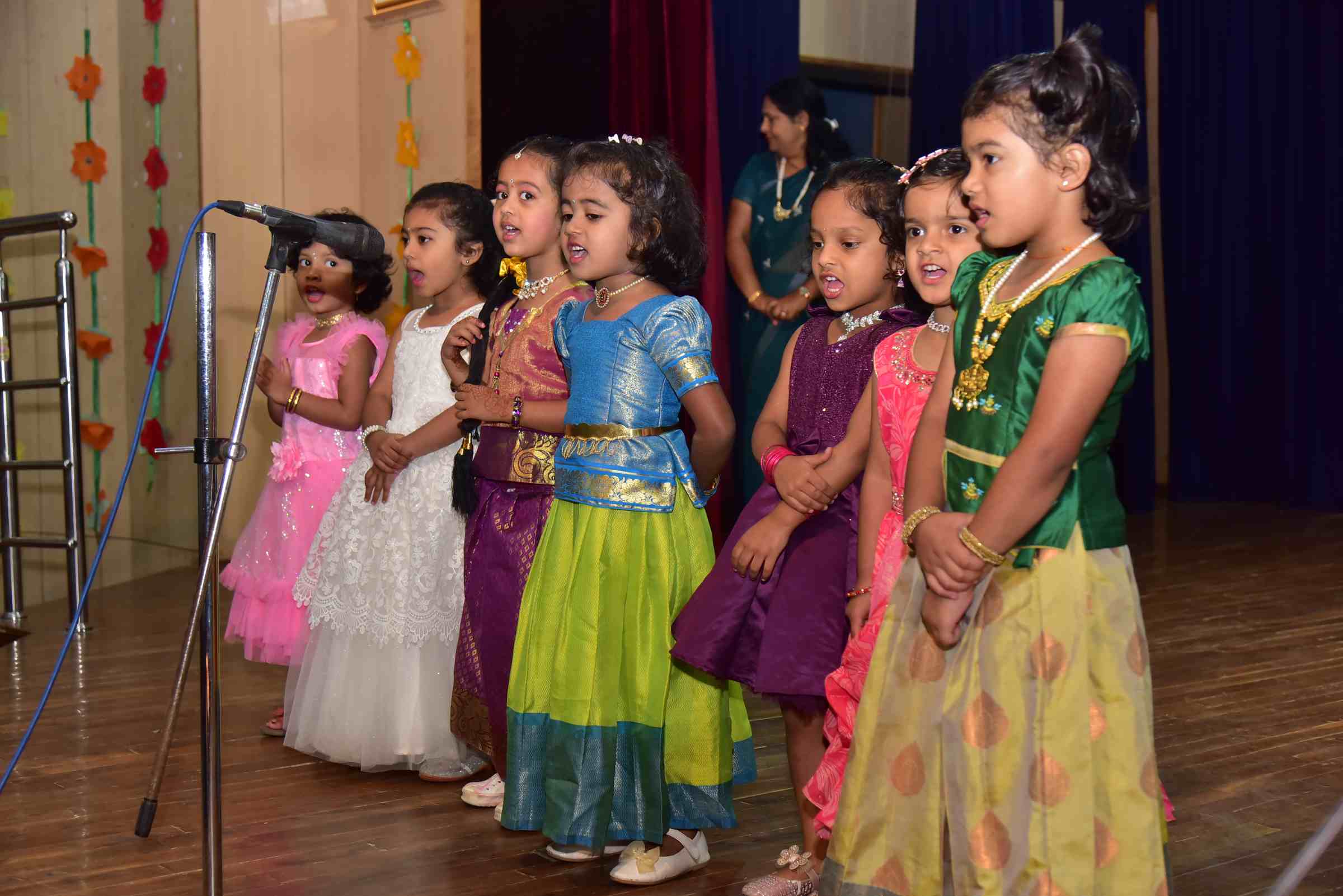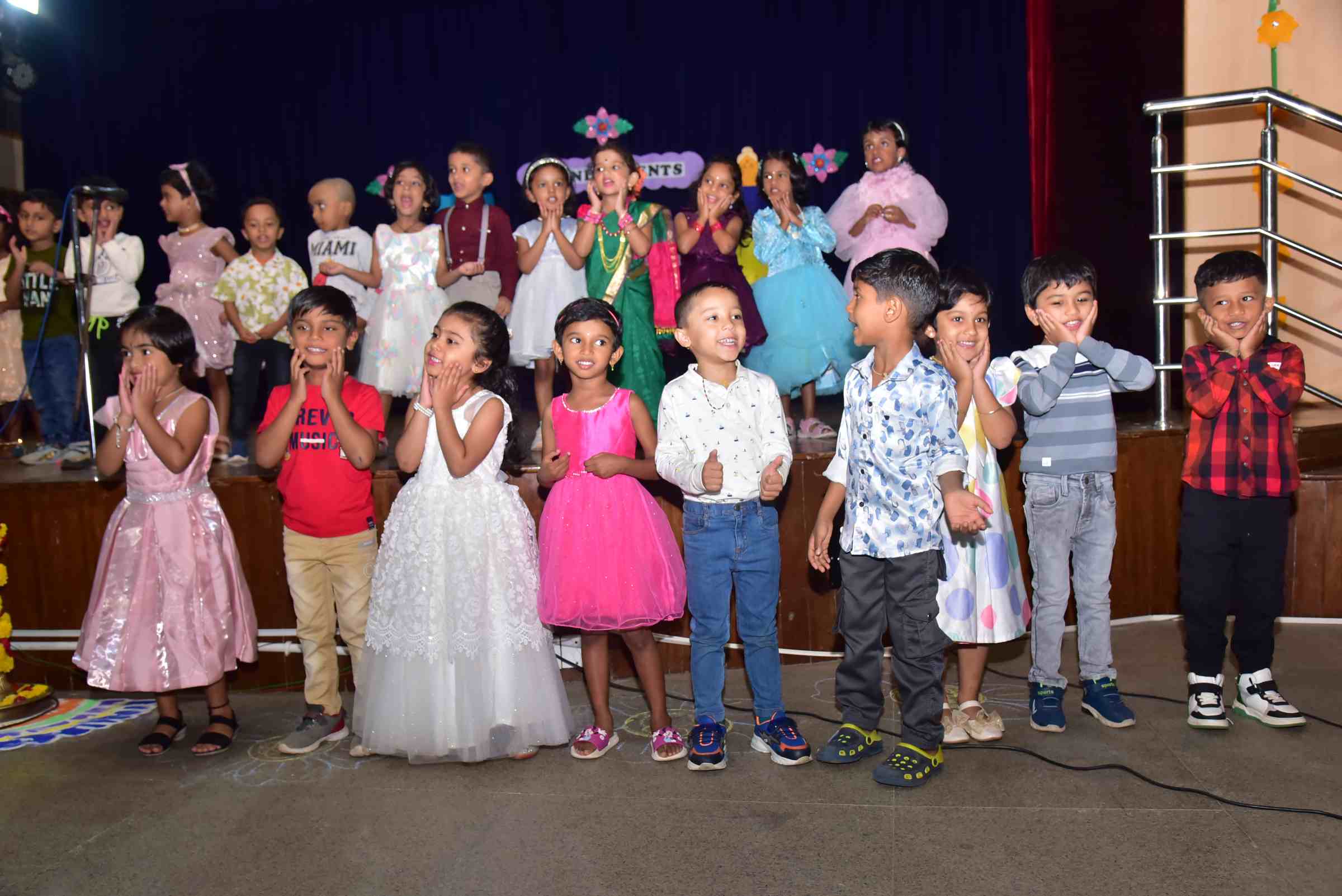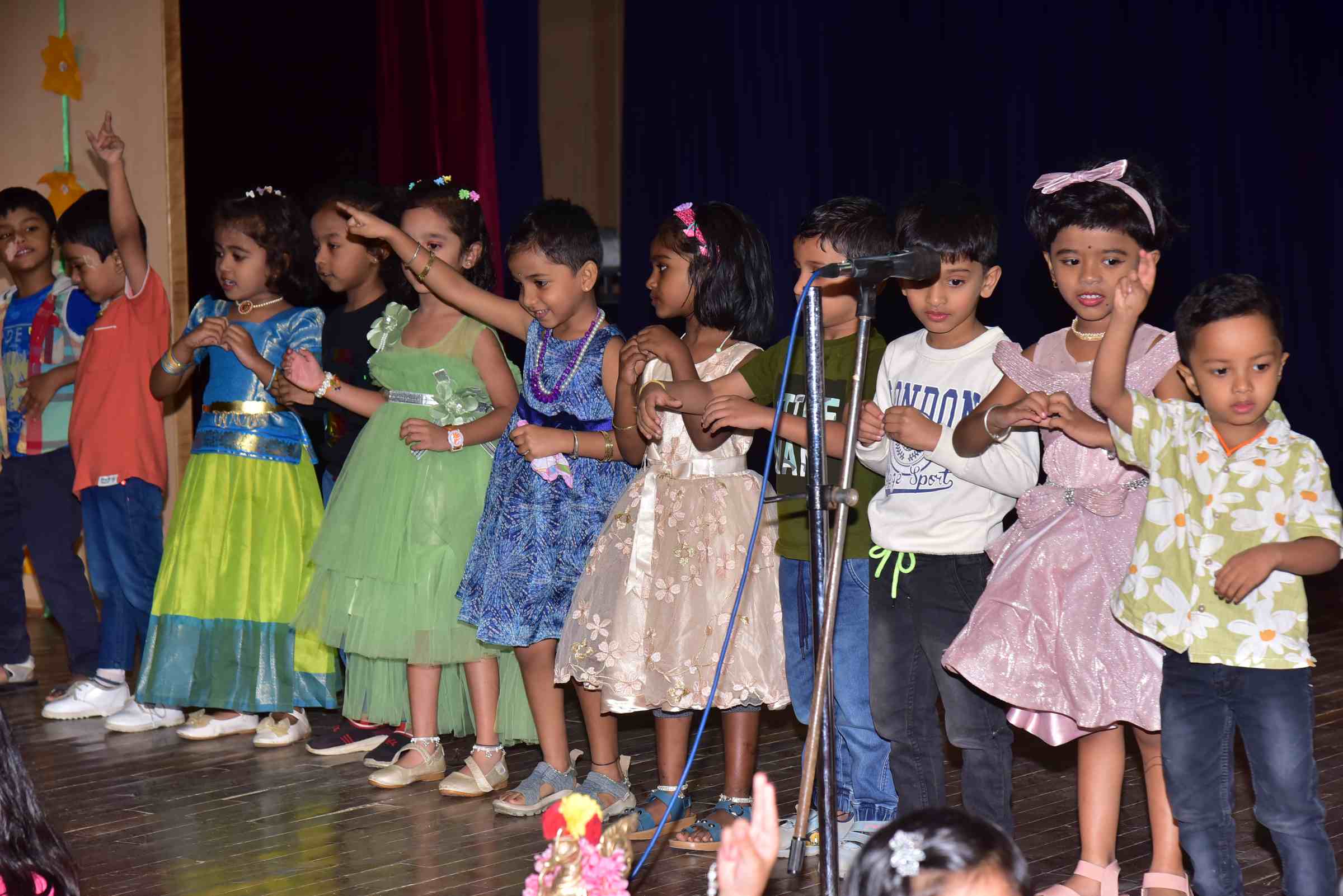 Developing self-expression and confidence through stage presentations to showcase the talent as an individual and in groups: fashion shows, fancy dress, role plays etc. Encourages children to participate in class and activities, giving them a chance to speak up and share their thoughts. Participation in events & celebrations ensures socio-emotional development